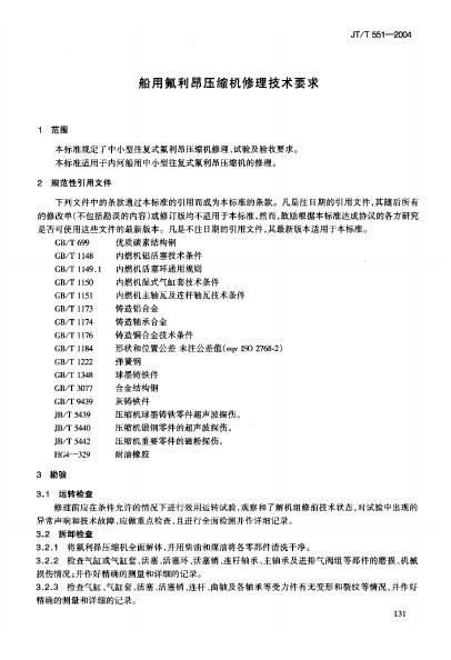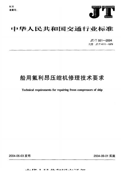 JT/T 551-2004 船用氟利昂压缩机修理技术要求