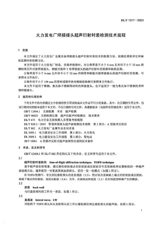 DL/T 1317-2023 火力发电厂焊接接头超声衍射时差检测技术规程