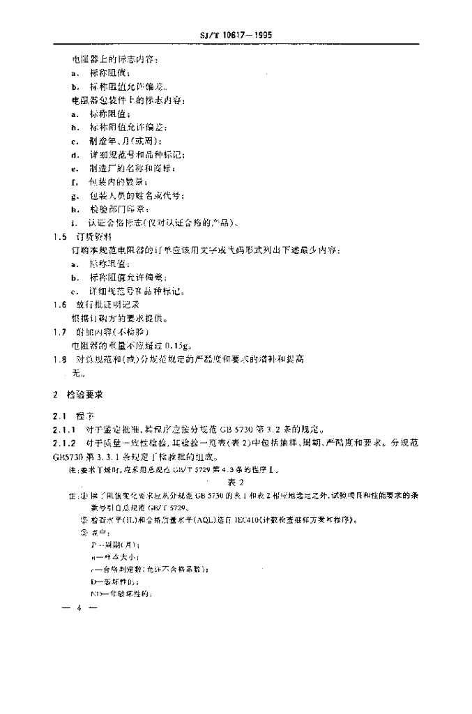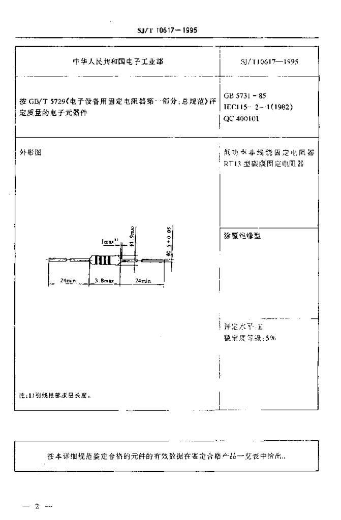 SJ/T 10617-1995 电子元器件详细规范 低功率非线绕固定电阻器RT13型碳膜固定电阻器