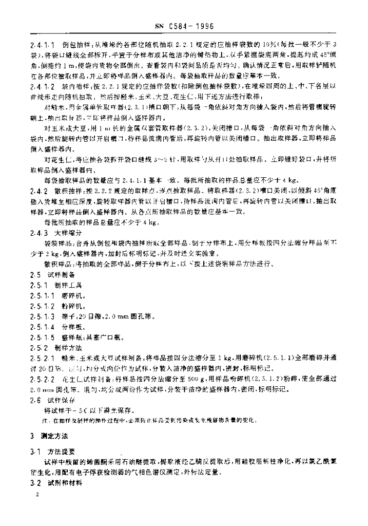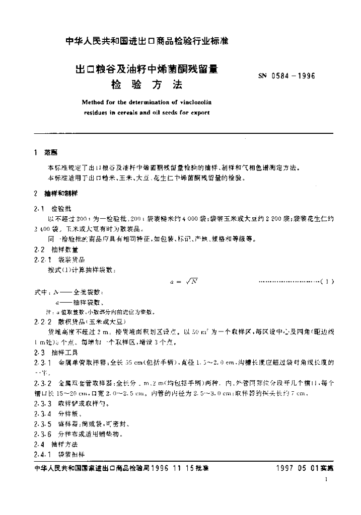 SN 0584-1996 出口粮谷及油籽中烯菌酮残留量检验方法