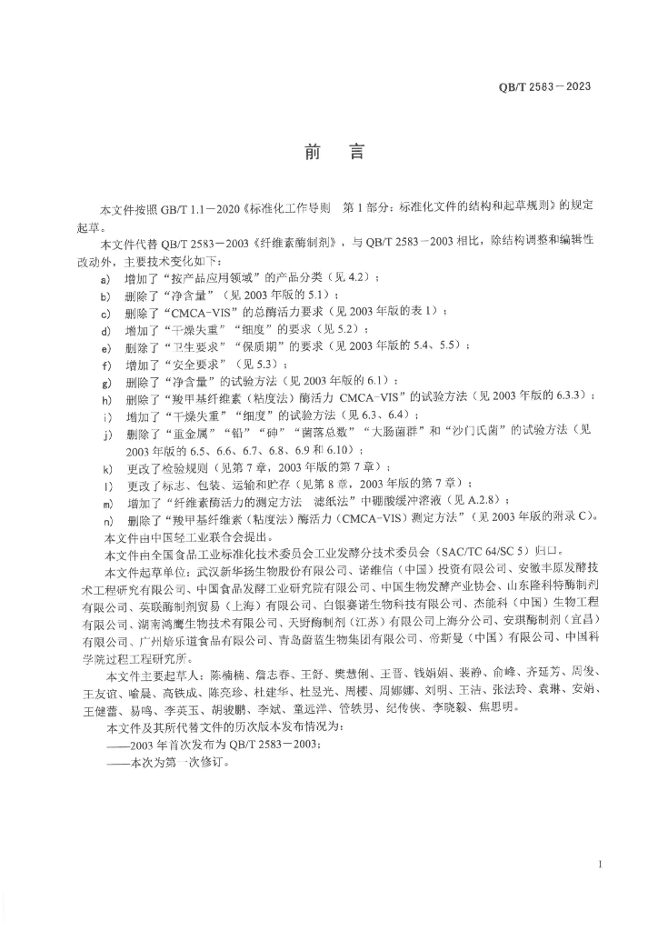 - 代替标准:QB/T 2583-2003