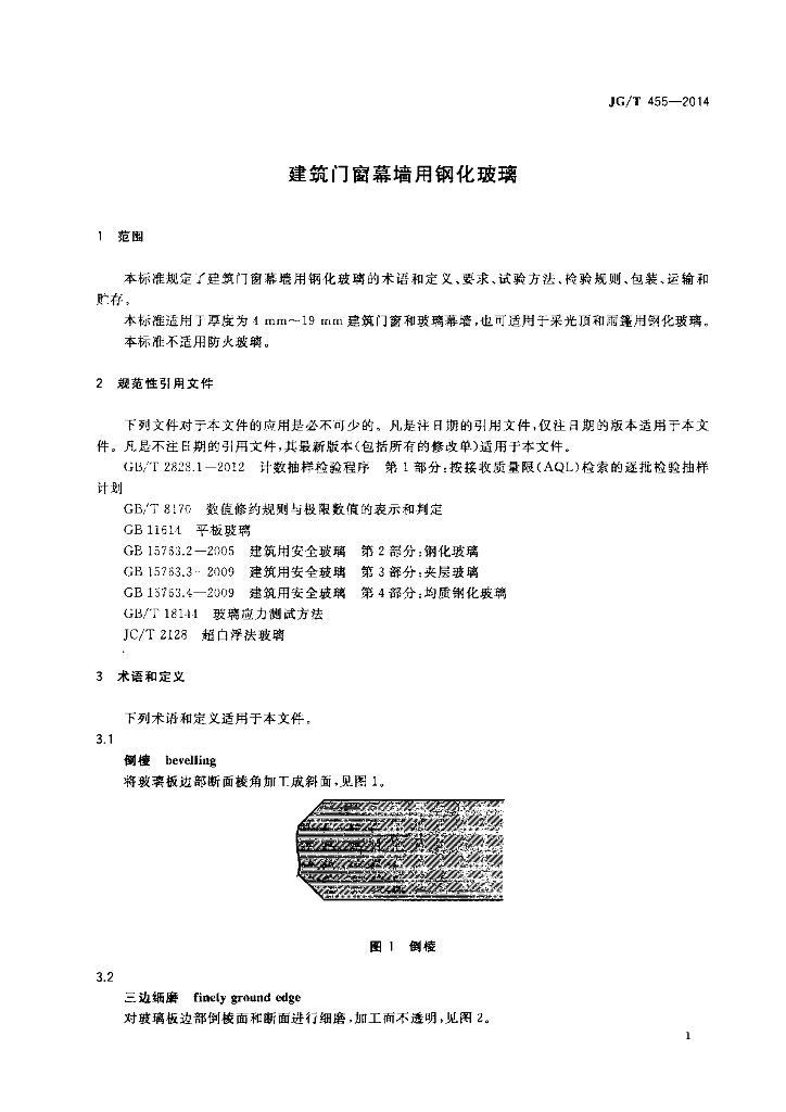 JG/T 455-2014 建筑门窗幕墙用钢化玻璃