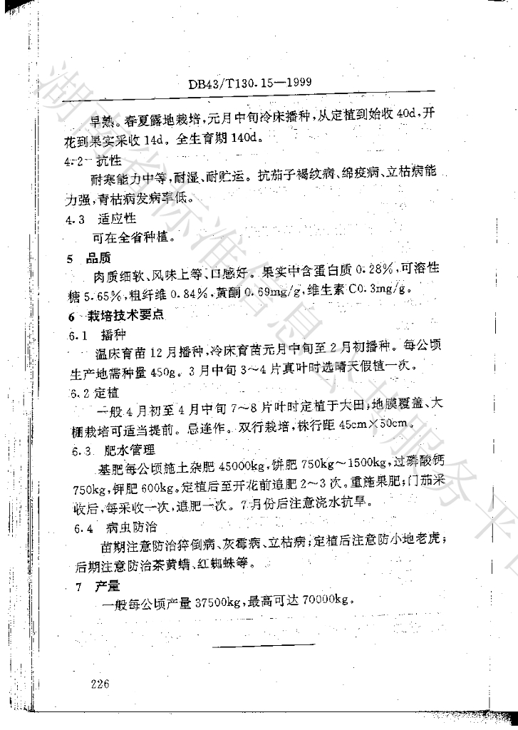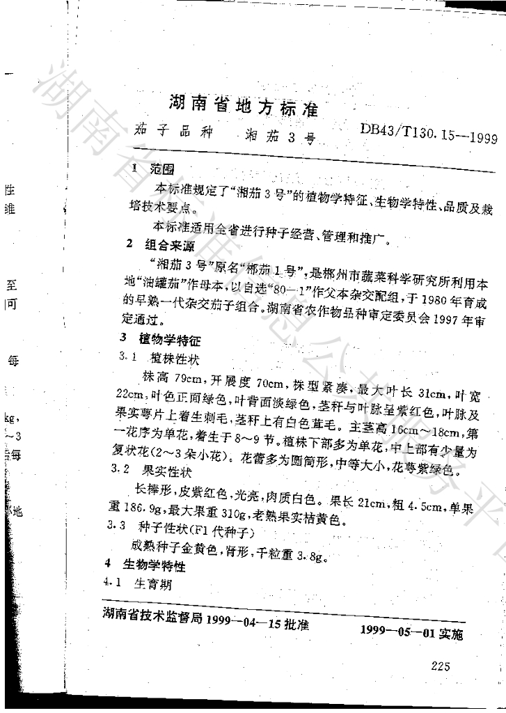 DB43/T 130.15-1999 茄子品种 湘茄3号