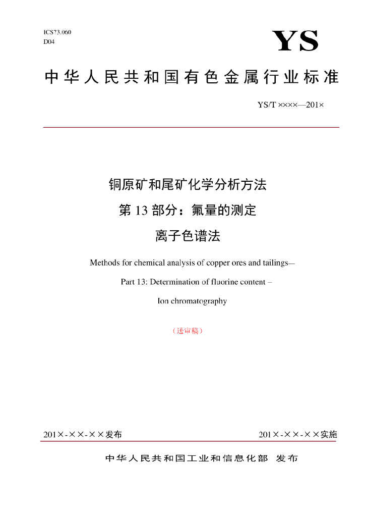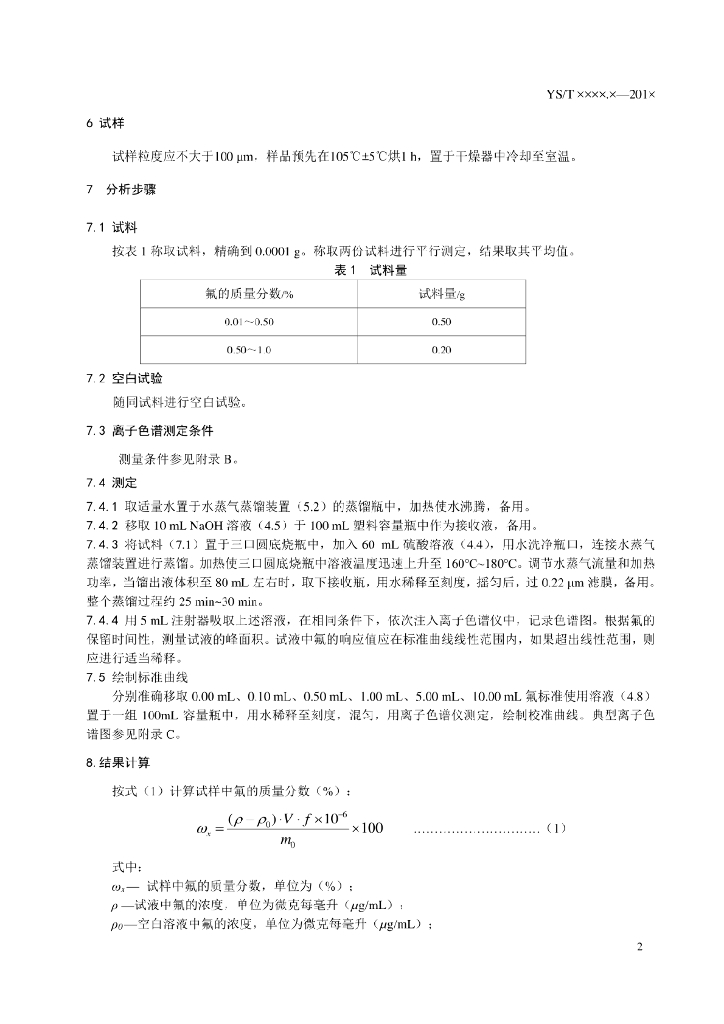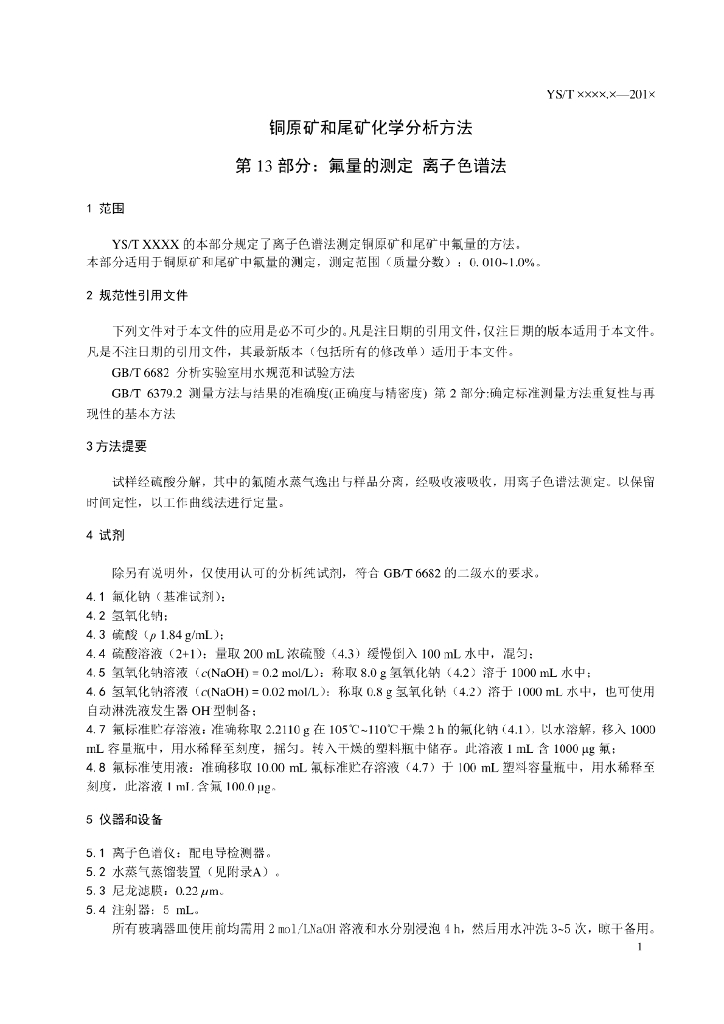 YS/T 1115.13-2016 铜原矿和尾矿化学分析方法 第13部分:氟量的测定 离子选择电极法和离子色谱法