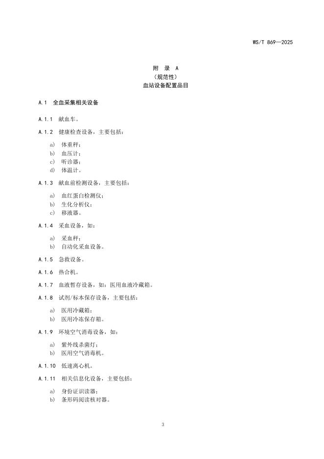 WS/T 869-2025 一般血站设备配置基本标准