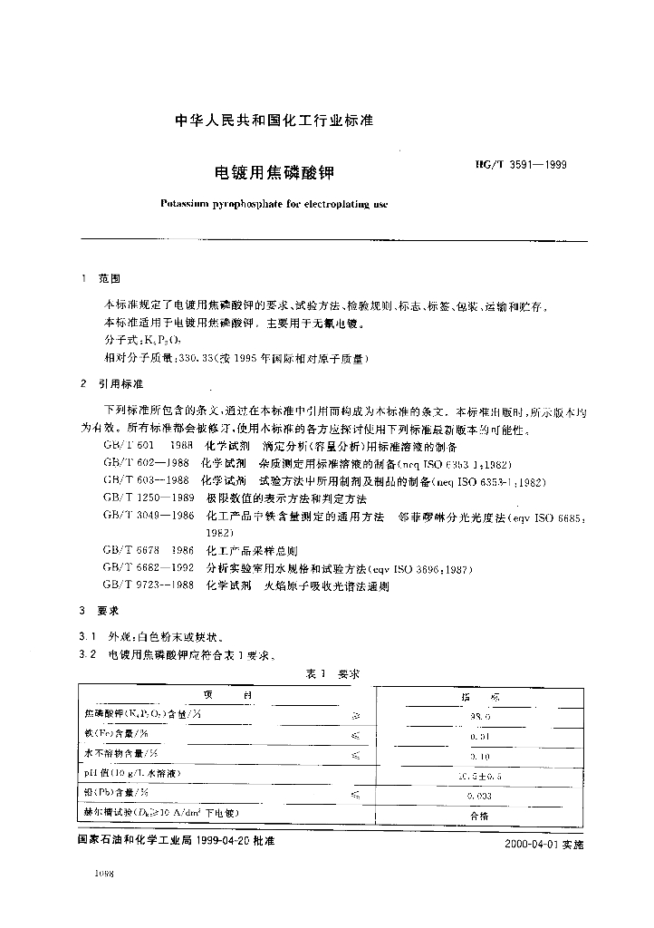 HG/T 3591-1999 电镀用焦磷酸钾