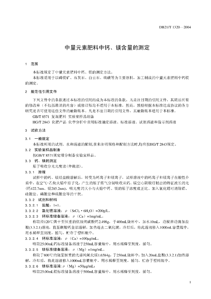 DB21/T 1320-2004 中量元素肥料中钙、镁含量的测定