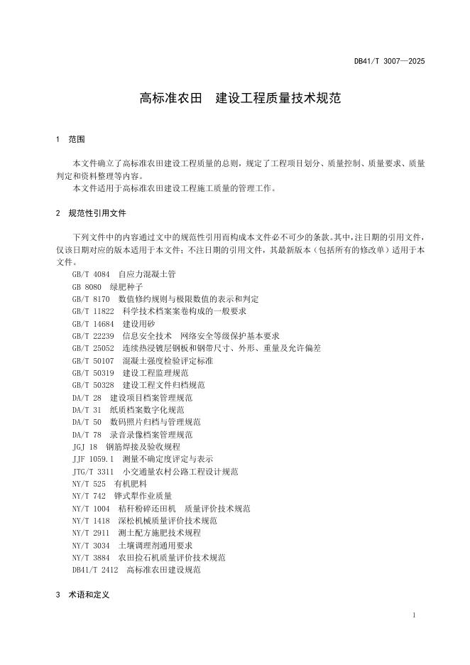 DB41/T 3007-2025 高标准农田 建设工程质量技术规范