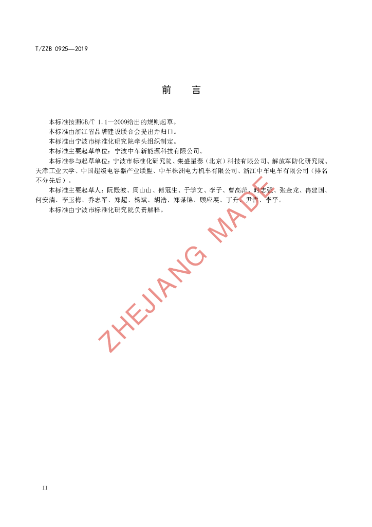 宁波中车新能源科技有限公司、宁波市标准化研究院、集盛星泰(北京)科技有限公司、解放军防化研究院、天津工业大学、中国超级电容器产业联盟、中车株洲电力机车有限公司、浙江中车电车有限公司