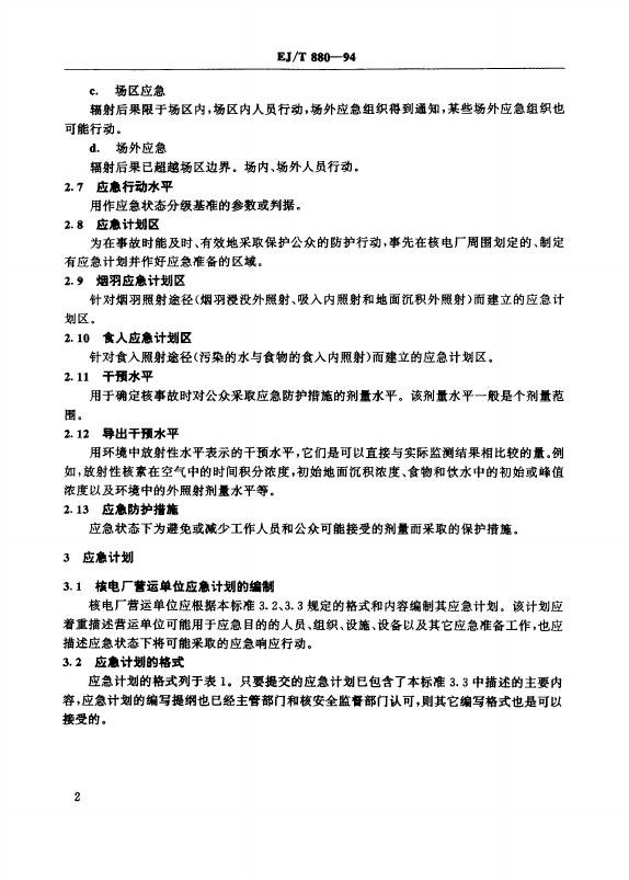 EJ/T 880-1994 核电厂营运单位应急计划与执行程序准则