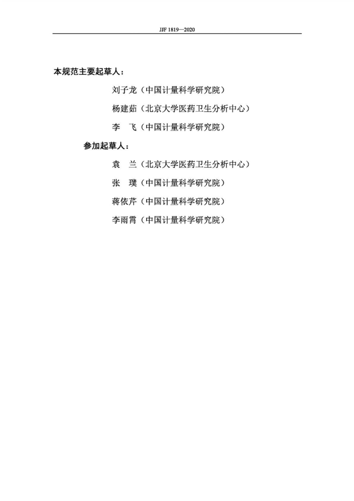 刘子龙(中国计量科学研究院)、杨建茹(北京大学医药卫生分析中心)、李飞(中国计量科学研究院)、袁兰(北京大学医药卫生分析中心)、张璞(中国计量科学研究院)、蒋依芹(中国计量科学研究院)、李雨霄(中国计量科学研究院)