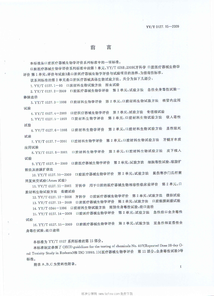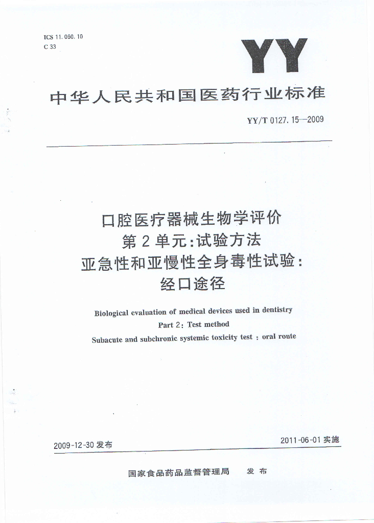 YY/T 0127.15-2009 口腔医疗器械生物学评价 第2单元:试验方法亚急性和亚慢性全身毒性试验:经口途径