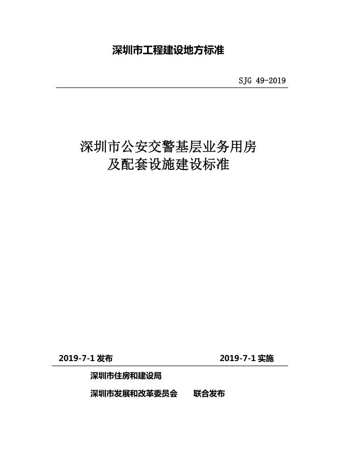 - 3SJG 49-2019 深圳市公安交警基层业务用房及配套设施建设标准
