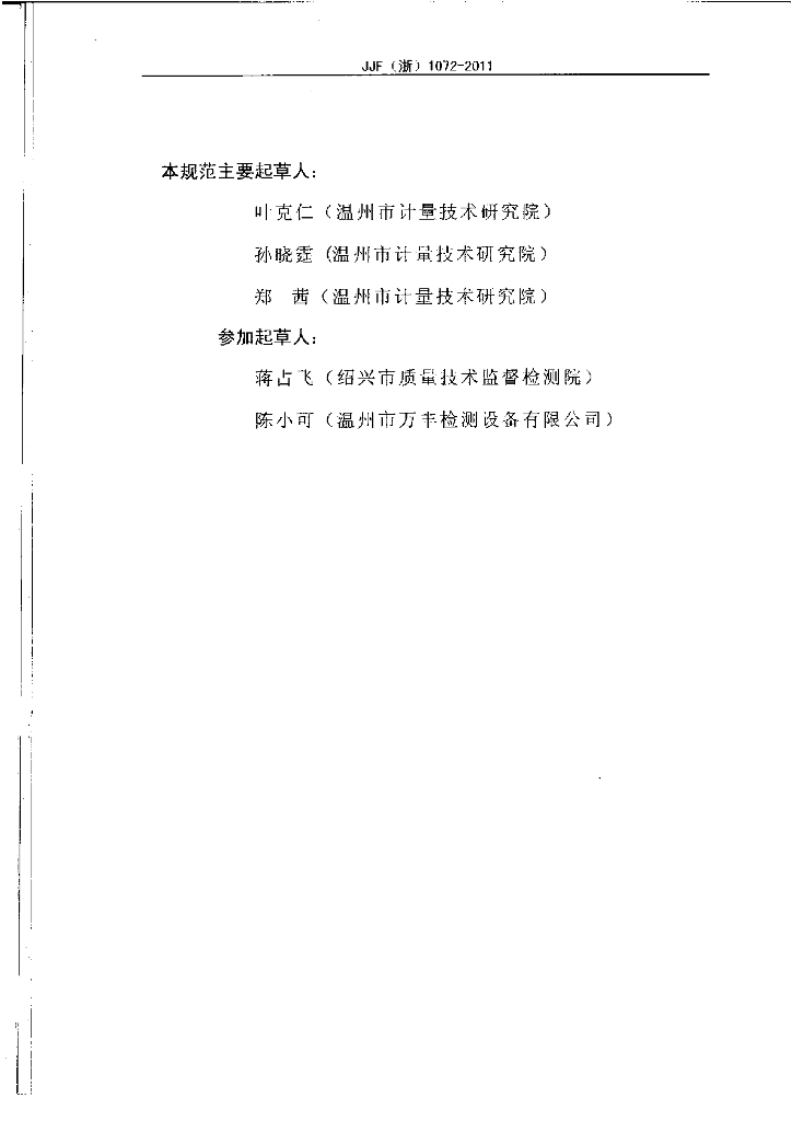 叶克仁(温州市计量技术研究院)、孙晓霆(温州市计量技术研究院)、郑茜(温州市计量技术研究院)、蒋占飞(绍兴市质量技术监督检测院)、陈小可(温州市万丰检测设备有限公司)