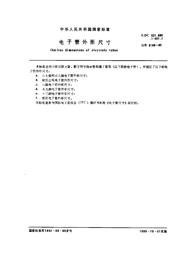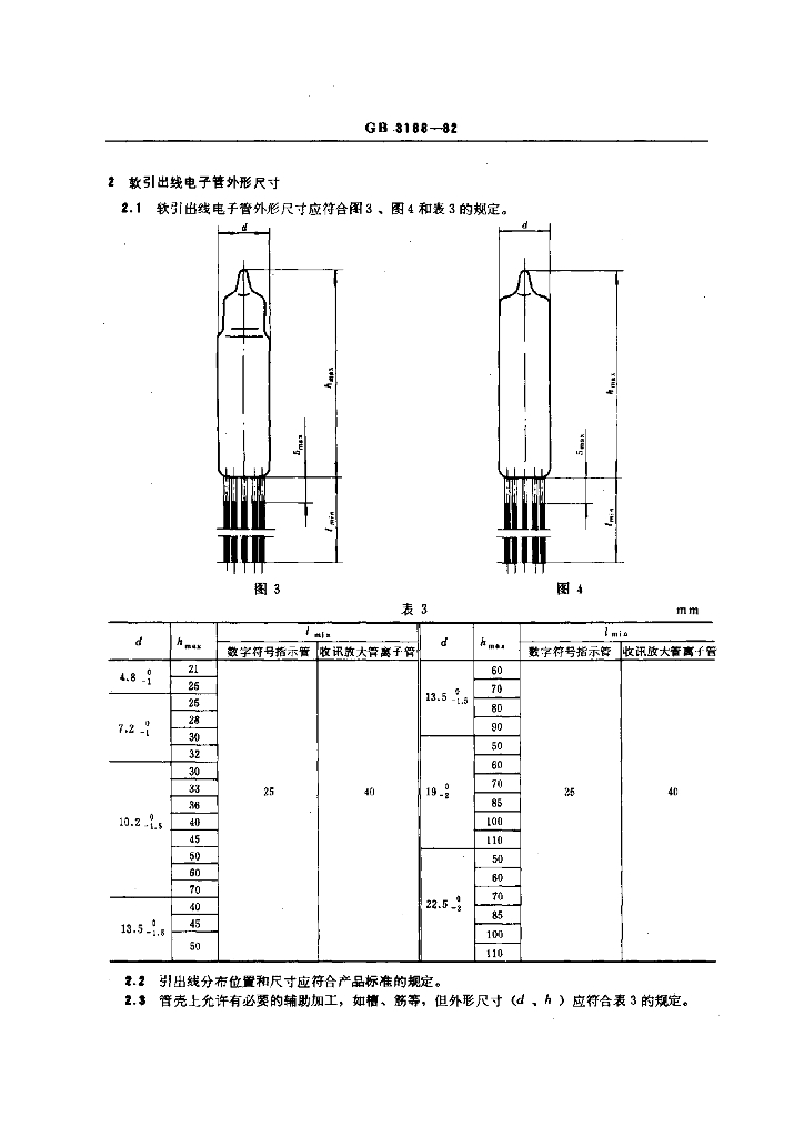 GB/T 3188-1982 电子管外形尺寸