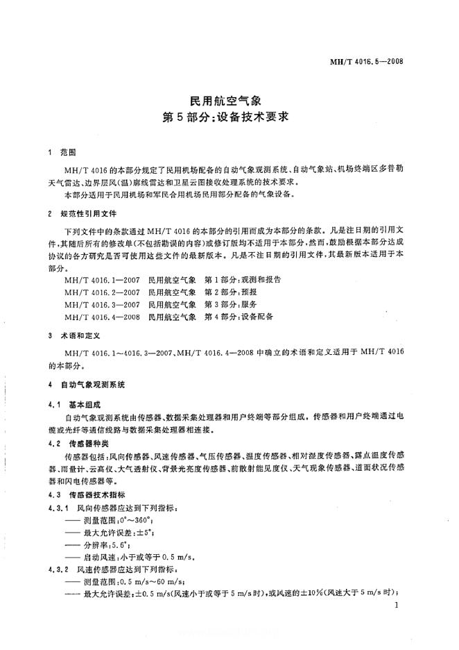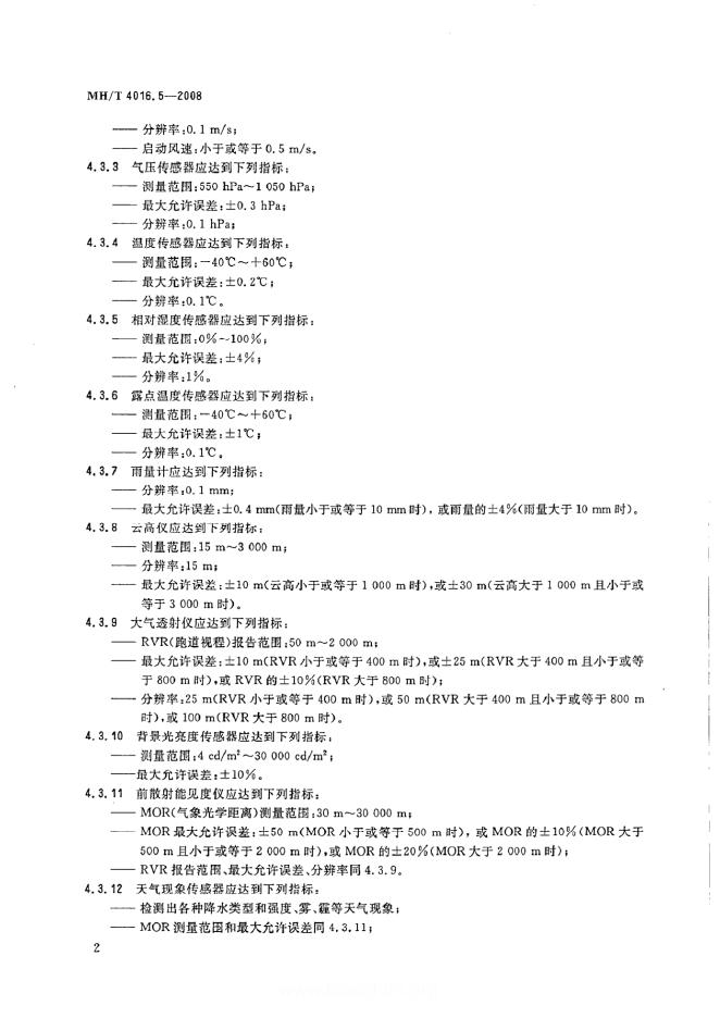 MH/T 4016.5-2008 民用航空气象 第5部分:设备技术要求