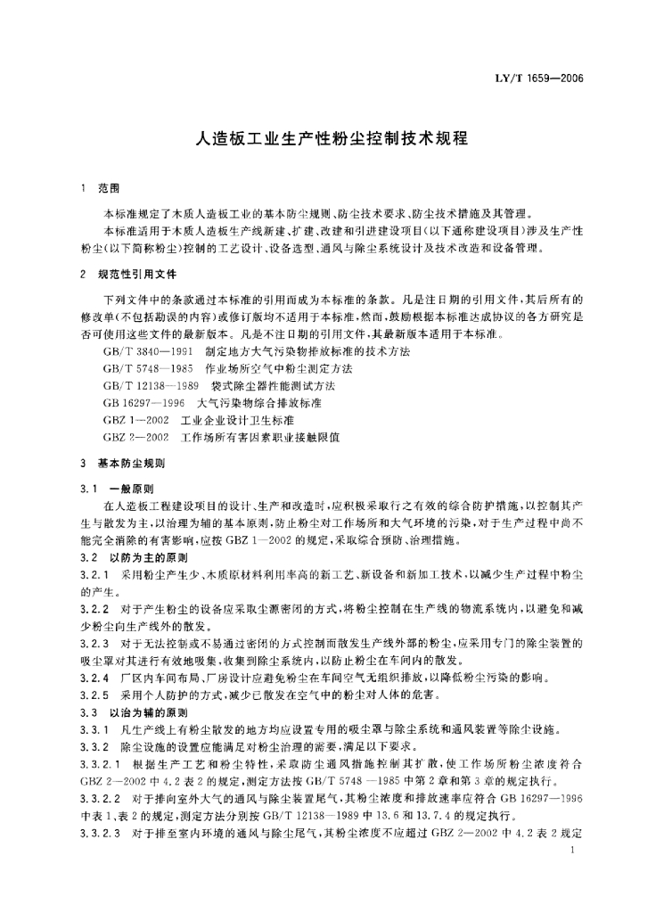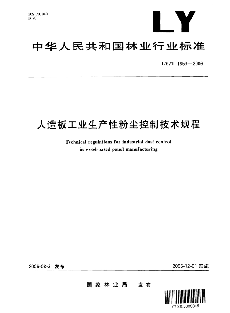 LY/T 1659-2006 人造板工业生产性粉尘控制技术规程