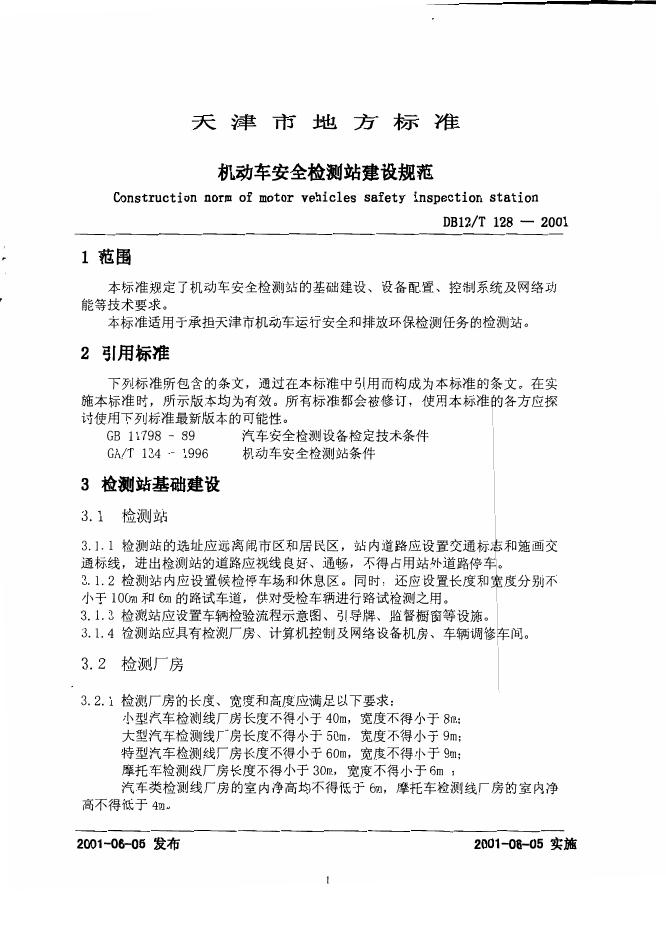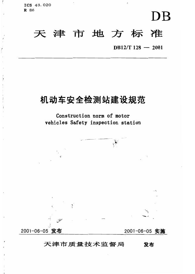 DB12/T 128-2001 机动车安全检测站建设规范