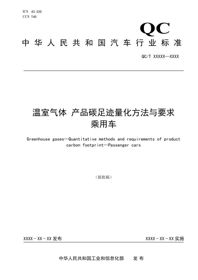 QC/T 1249-2025 温室气体 产品碳足迹量化方法与要求 乘用车