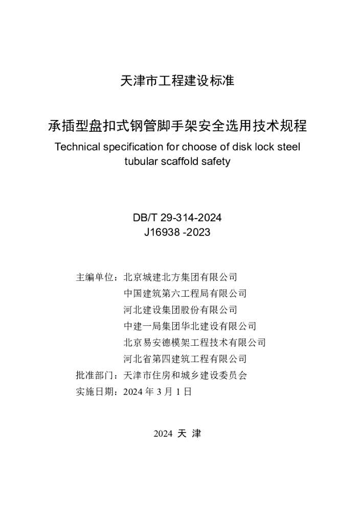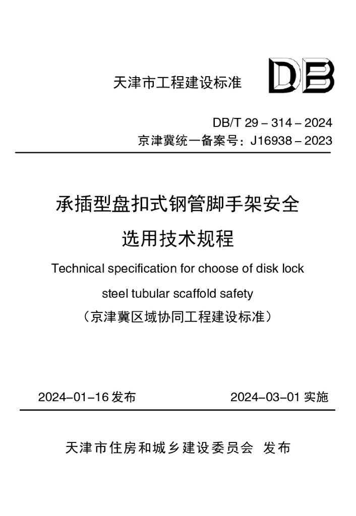 DB/T 29-314-2024 承插型盘扣式钢管脚手架安全选用技术规程