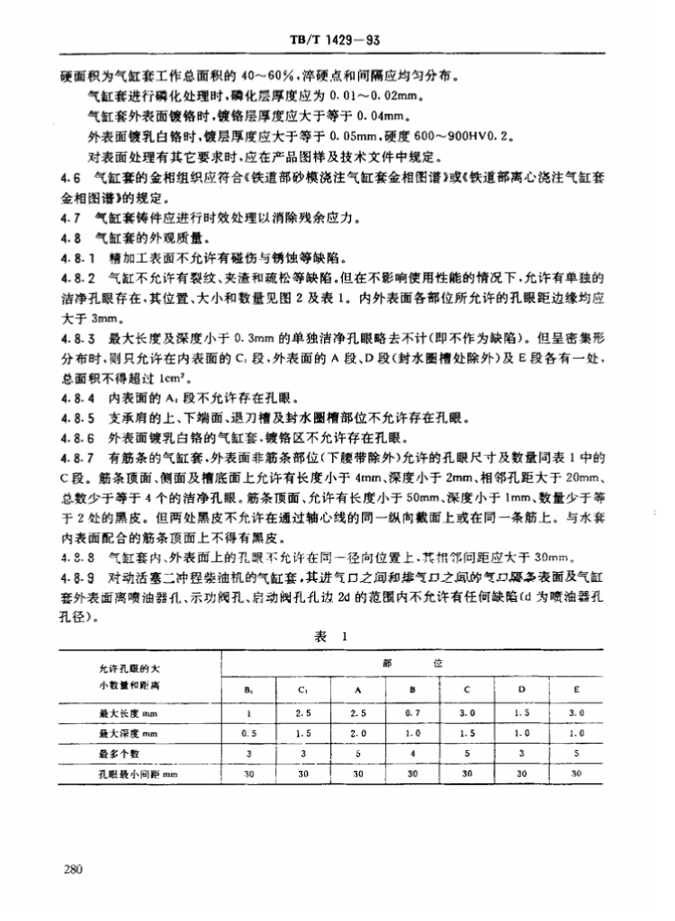 TB/T 1429-1993 内燃机车用柴油机铸铁气缸套技术条件