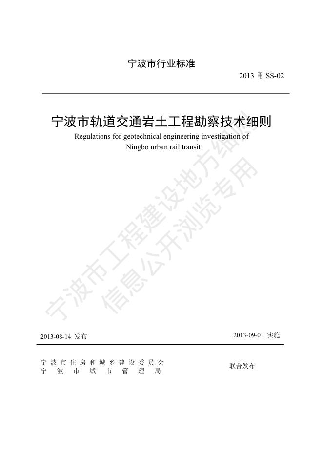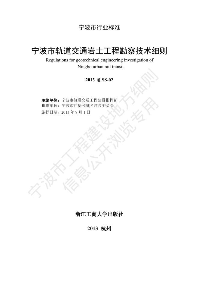 2013甬SS-02 宁波市轨道交通岩土工程勘察技术细则