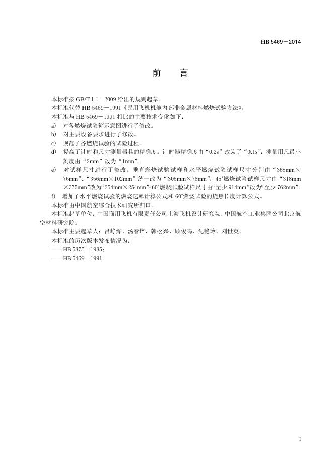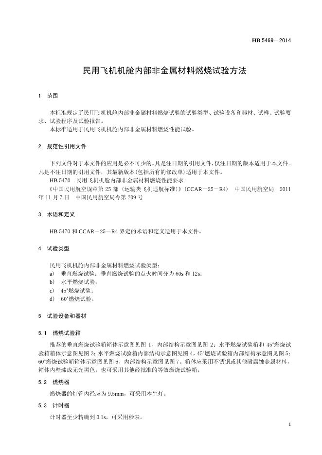 HB 5469-2014(2017) 民用飞机机舱内部非金属材料燃烧试验方法