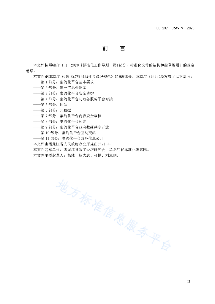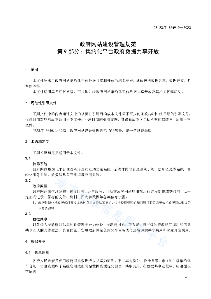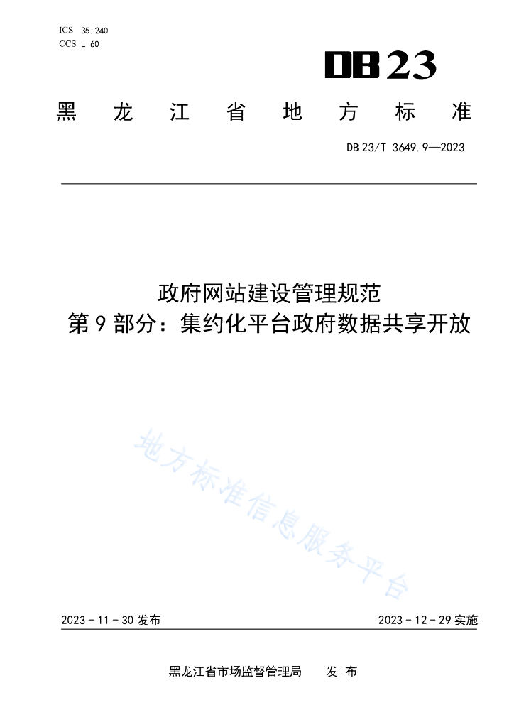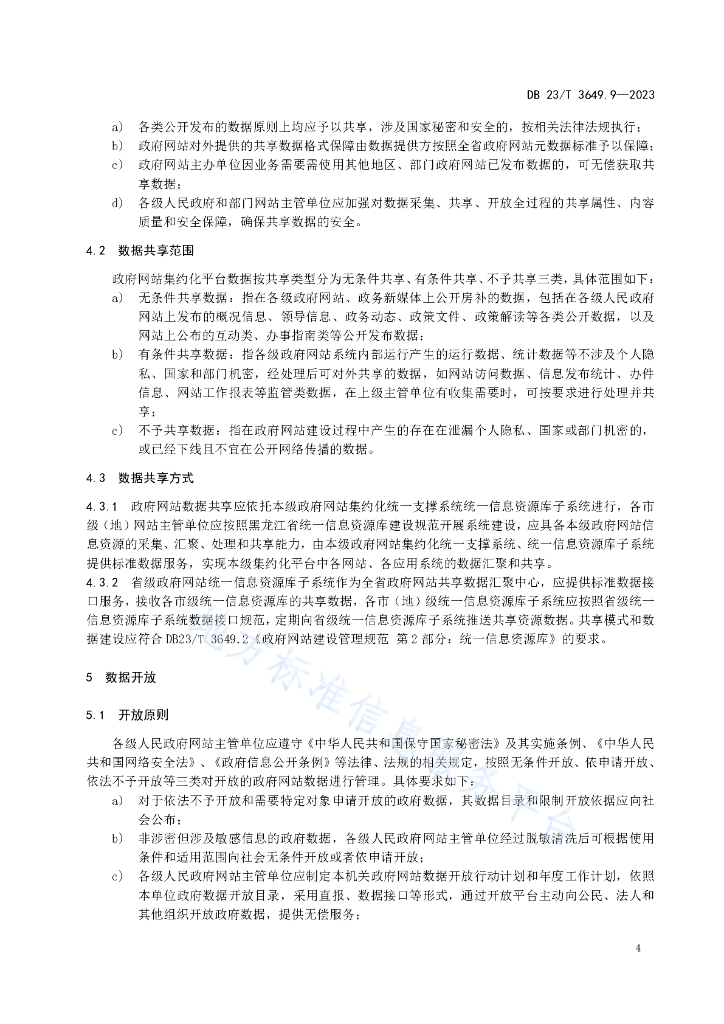 DB23/T 3649.9-2023 政府网站建设管理规范 第9部分:集约化平台政府数据共享开放