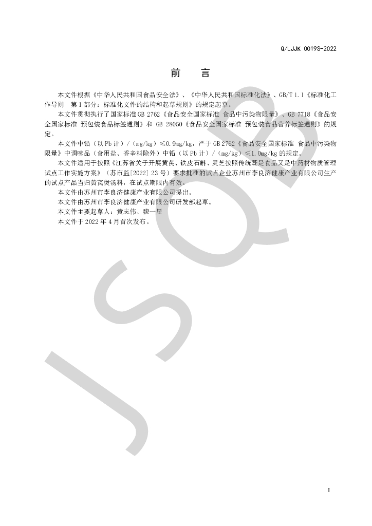 Q/LJJK 0019S-2022 当归黄芪煲汤料