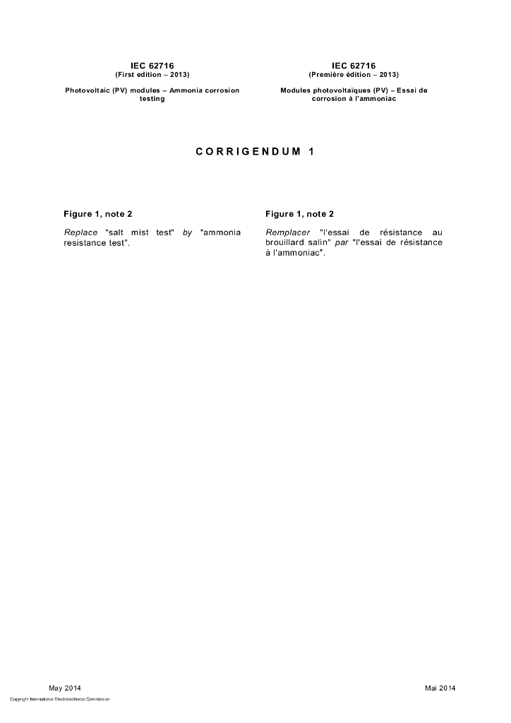 IEC 62716-2013/Cor 1-2014 勘误1:光伏(PV)组件 氨腐蚀测试