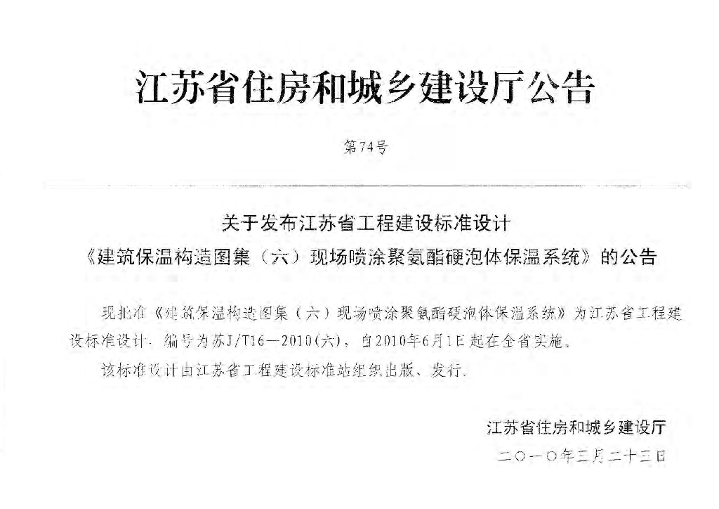 苏J/T16-2010(六) 建筑保温构造图集(六)现场喷涂聚氨酯硬泡体保温系统