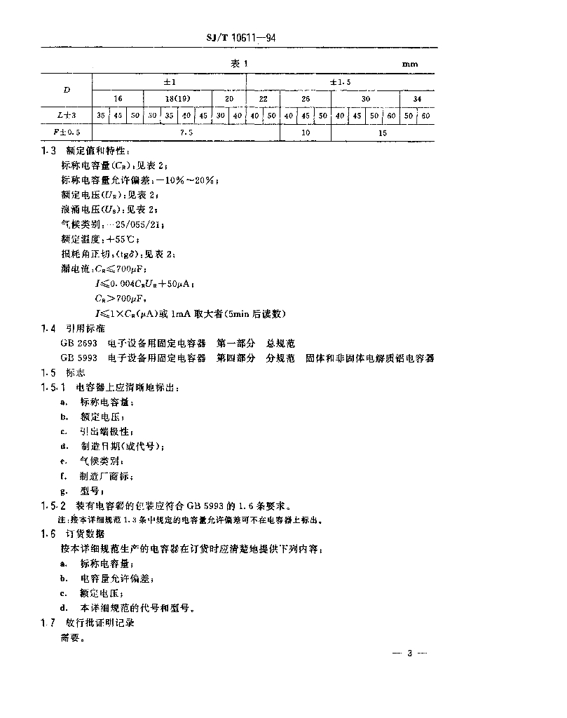 SJ/T 10611-1994 电子元器件详细规范 CD17型固定铝电解电容器