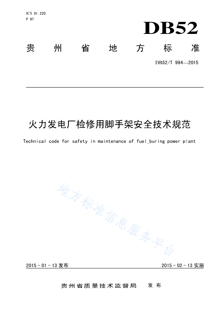 DB52/T 994-2015 火力发电厂检修用手脚架安全技术规范