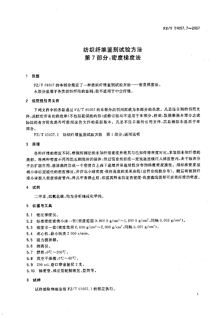 FZ/T 01057.7-2007 纺织纤维鉴别试验方法 第7部分密度梯度法