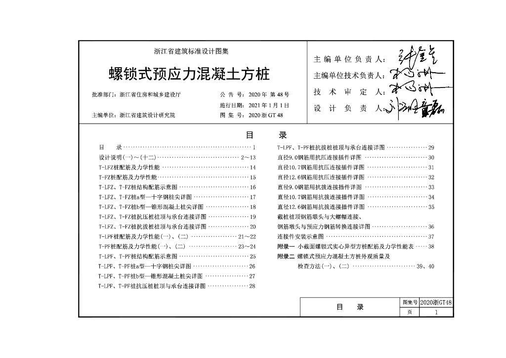 2020浙GT48 螺锁式预应力混凝土方桩图集