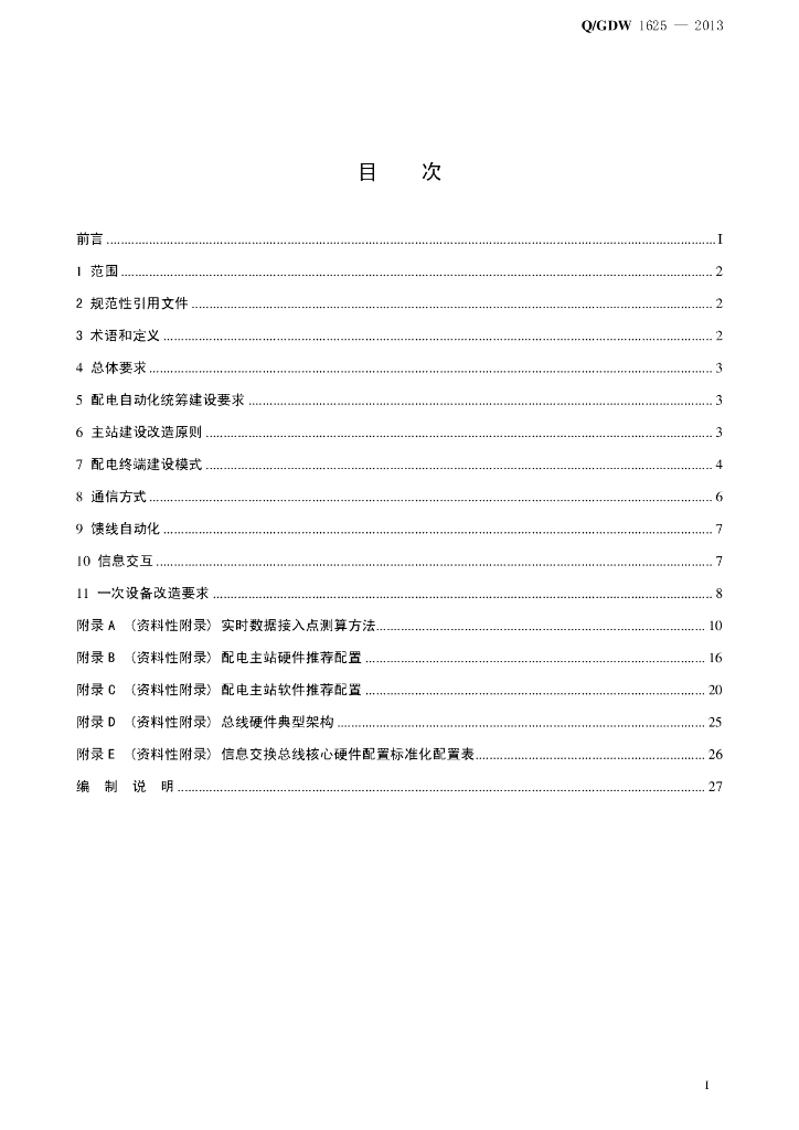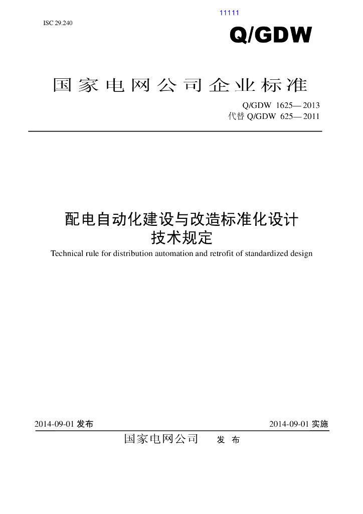 Q/GDW 1625-2013 配电自动化建设与改造标准化设计技术规定
