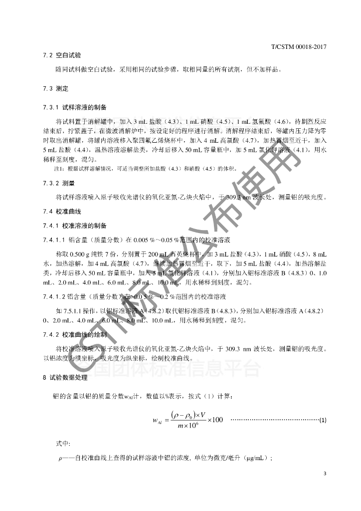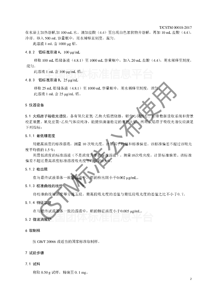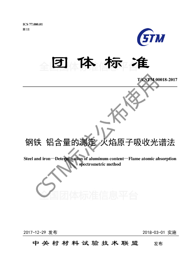 T/CSTM 00018-2017 钢铁及合金 铝含量的测定 火焰原子吸收光谱法