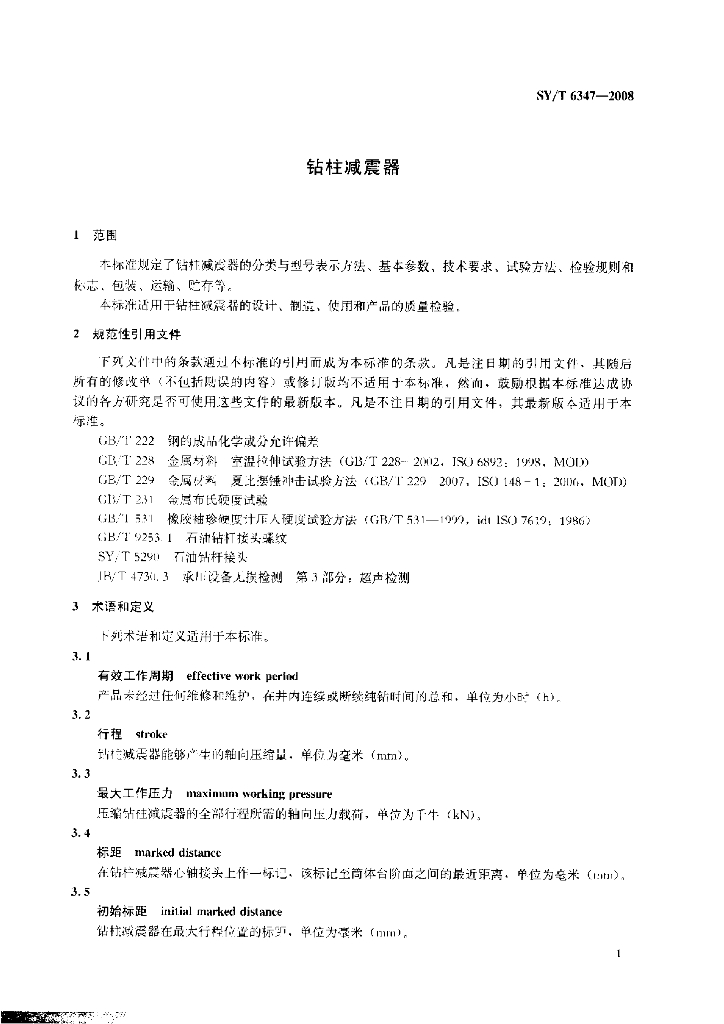 SY/T 6347-2008 钻柱减震器