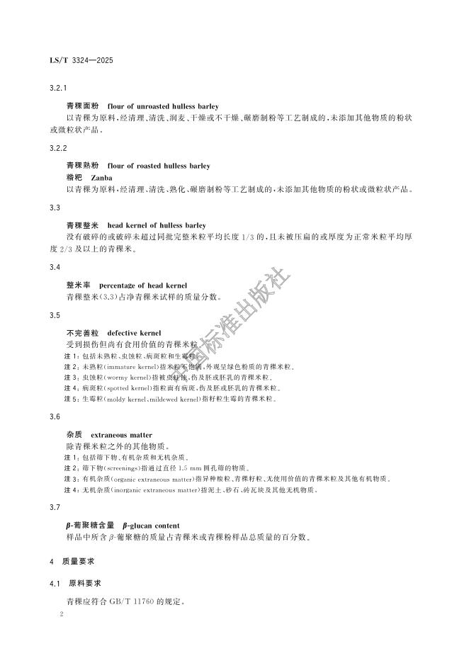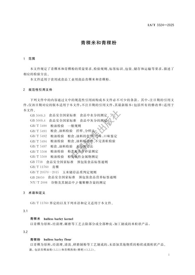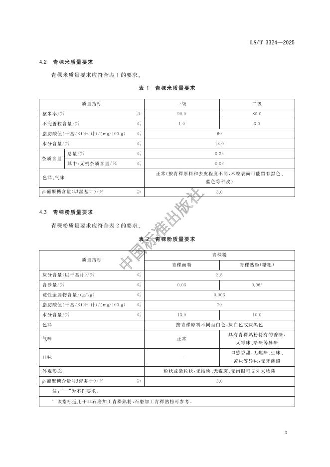 LS/T 3324-2025 青稞米和青稞粉