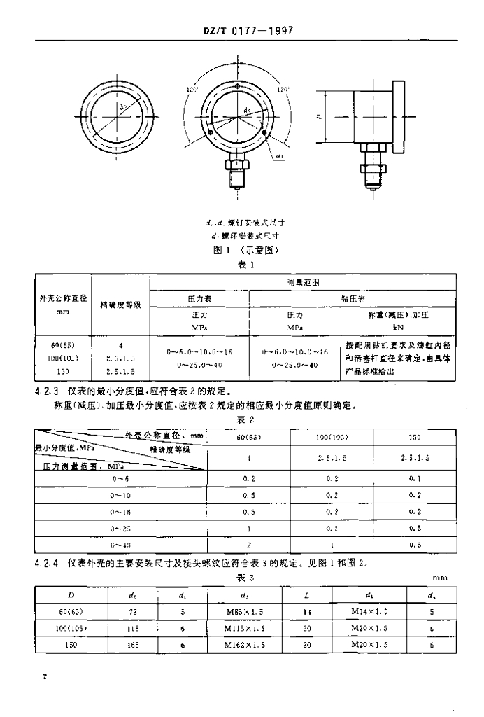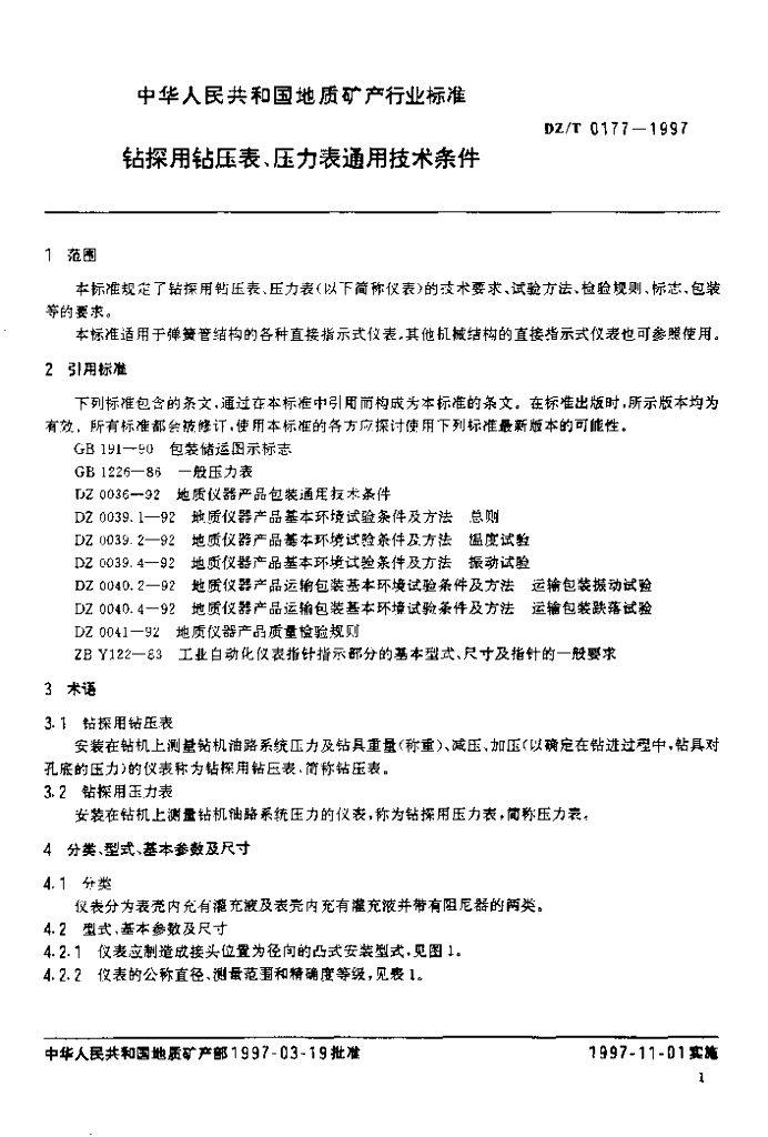 DZ/T 0177-1997 钻探用钻压表、压力表通用技术条件