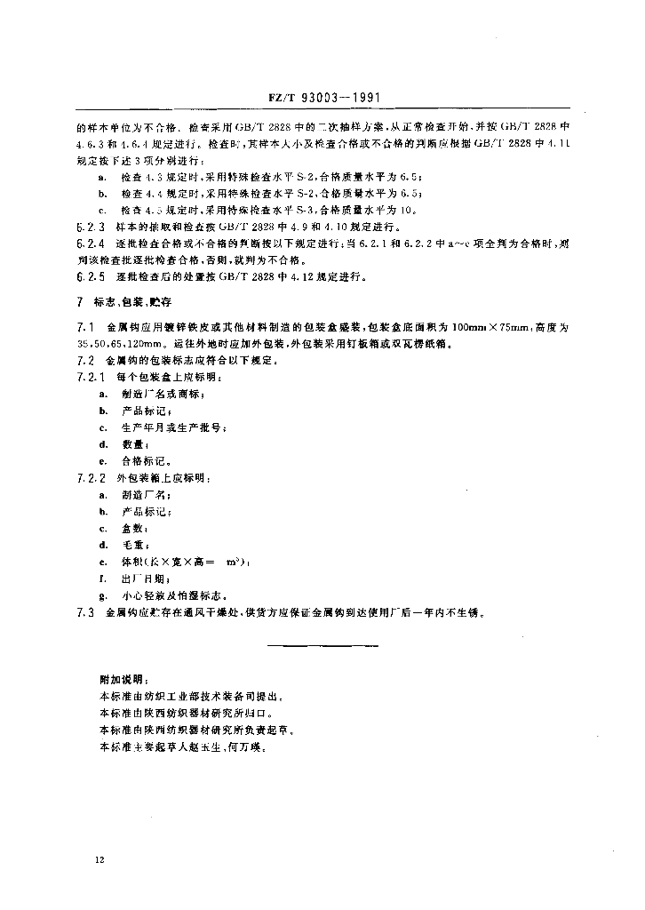 FZ/T 93003-1991 纺纱和捻线用金属钩