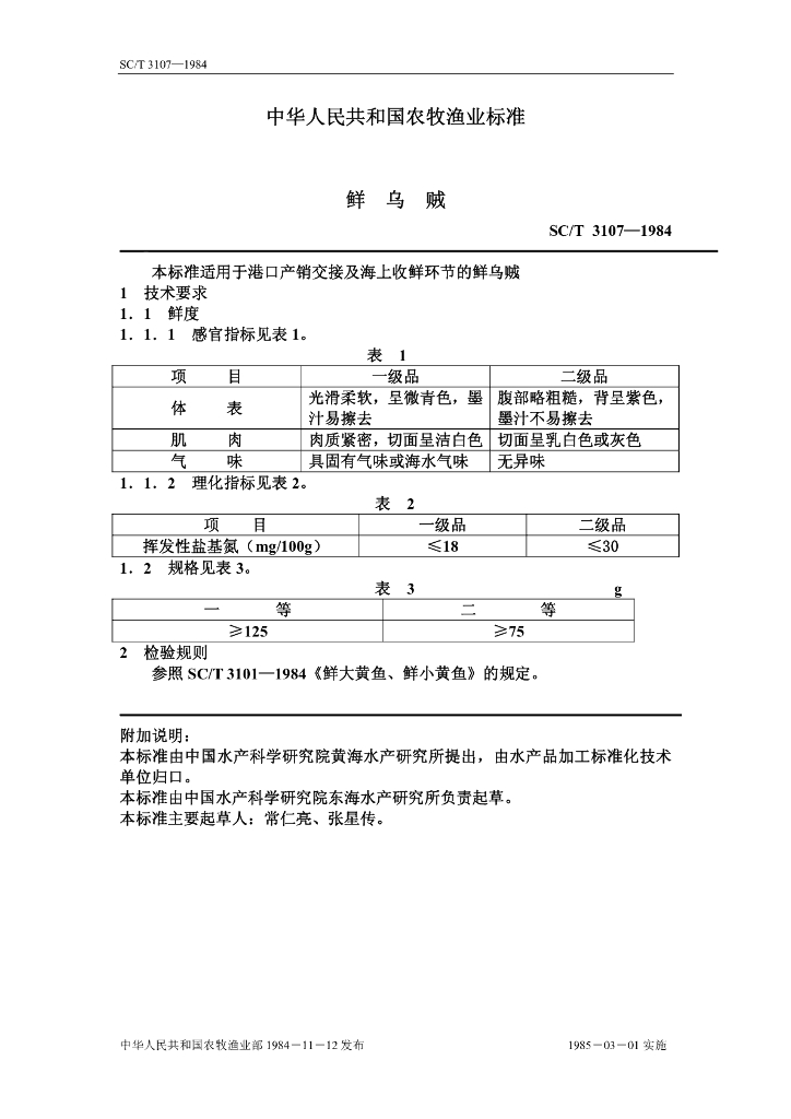 SC/T 3107-1984 鲜乌贼