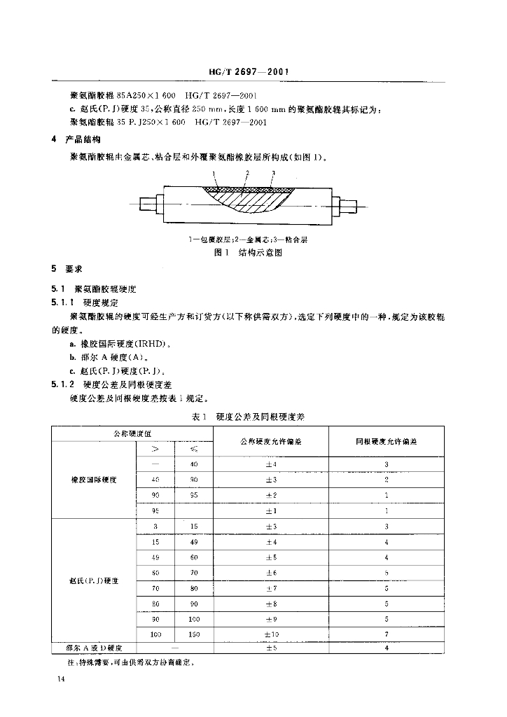 HG/T 2697-2001 胶辊 第二部分 聚氨酯胶辊