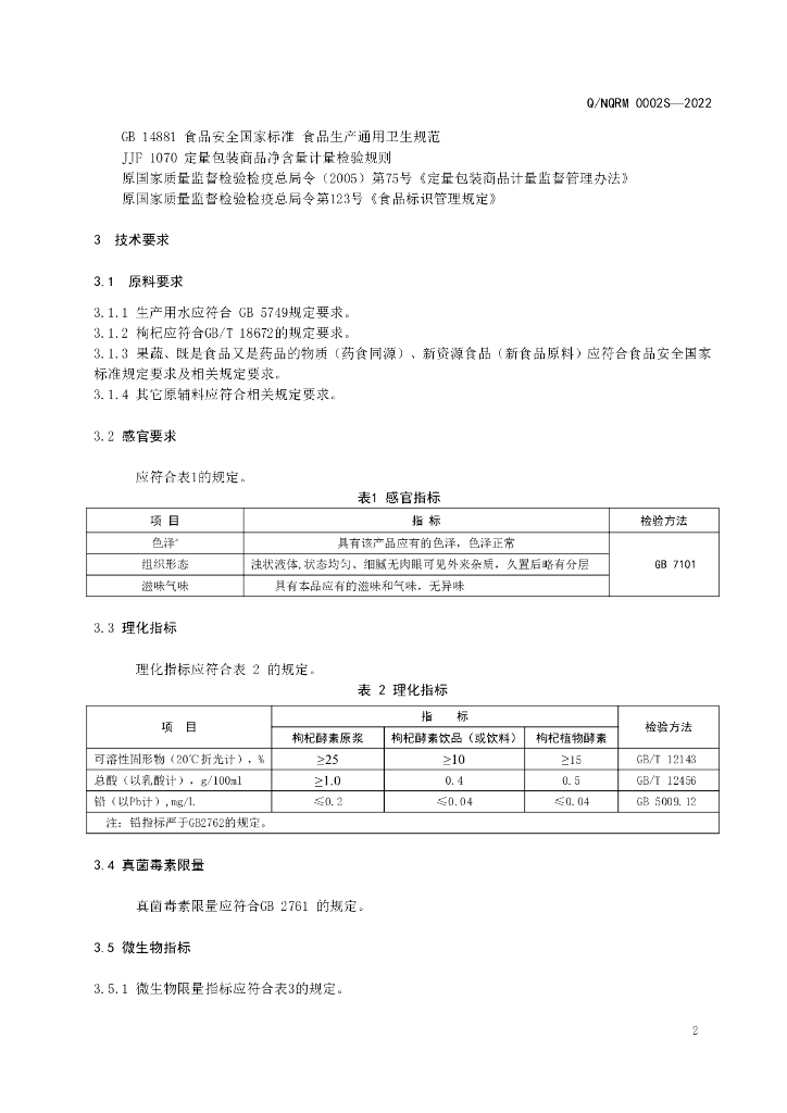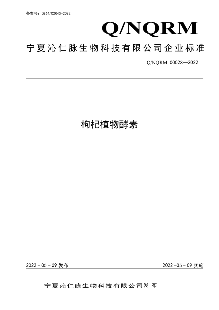 Q/NQRM 0002S-2022 枸杞植物酵素