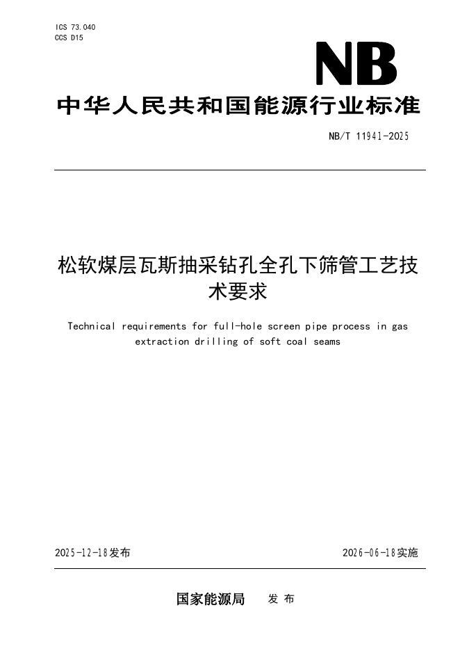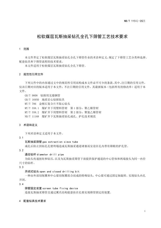 NB/T 11941-2025 松软煤层瓦斯抽采钻孔全孔下筛管工艺技术要求