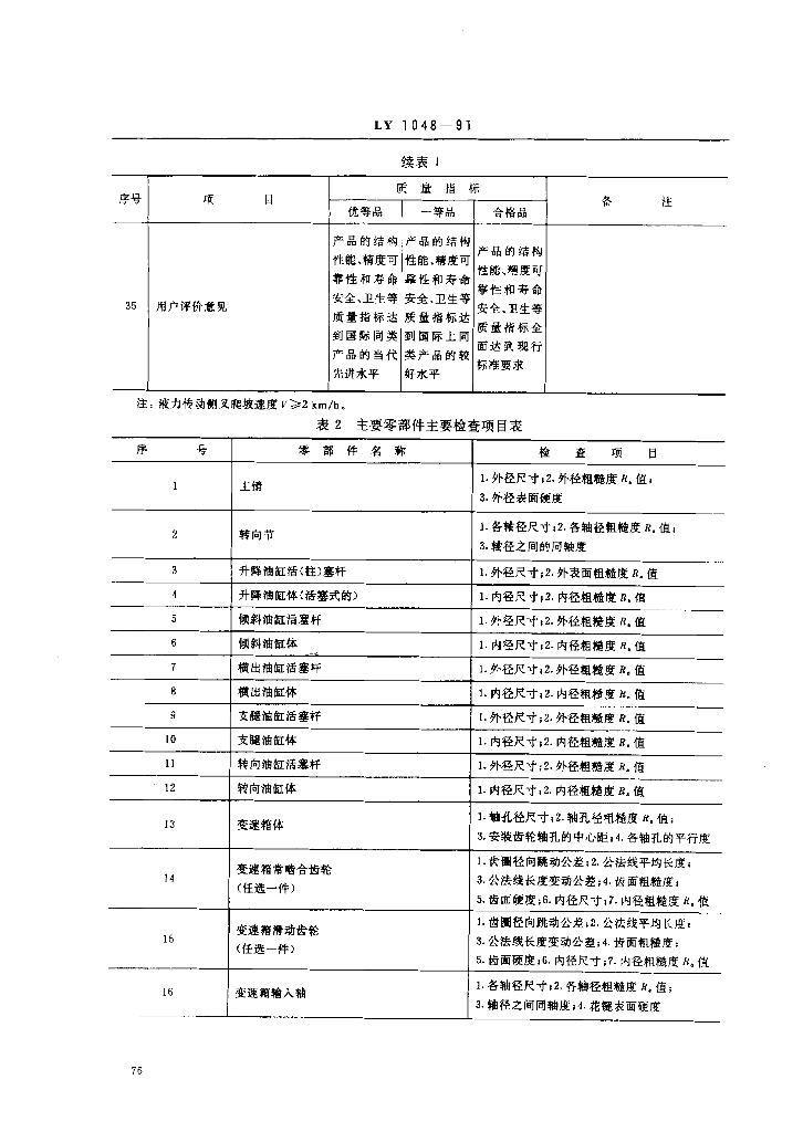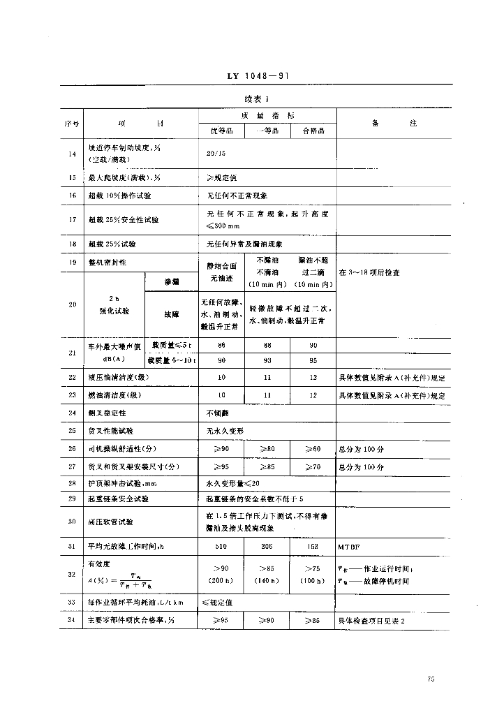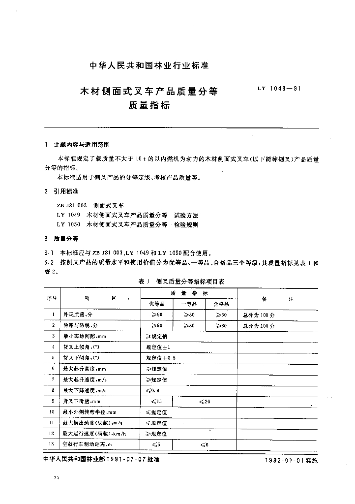 LY 1048-1991 木材侧面式叉车产品质量分等质量指标