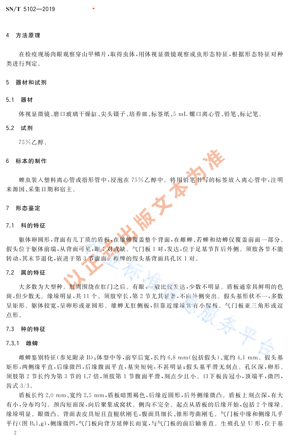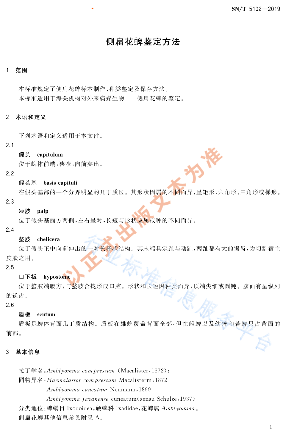 SN/T 5102-2019 侧扁花蜱鉴定方法