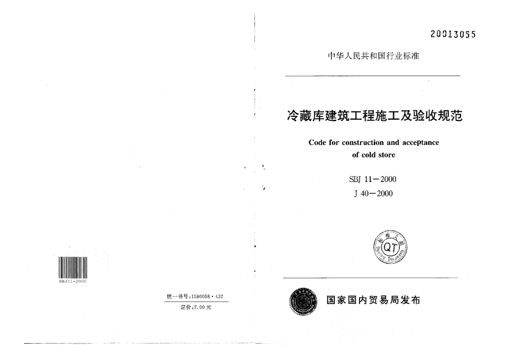 SBJ 11-2000 冷藏库建筑工程施工及验收规范