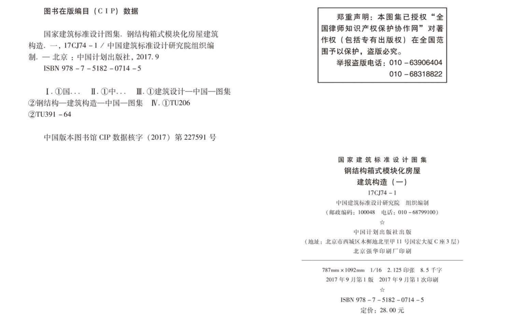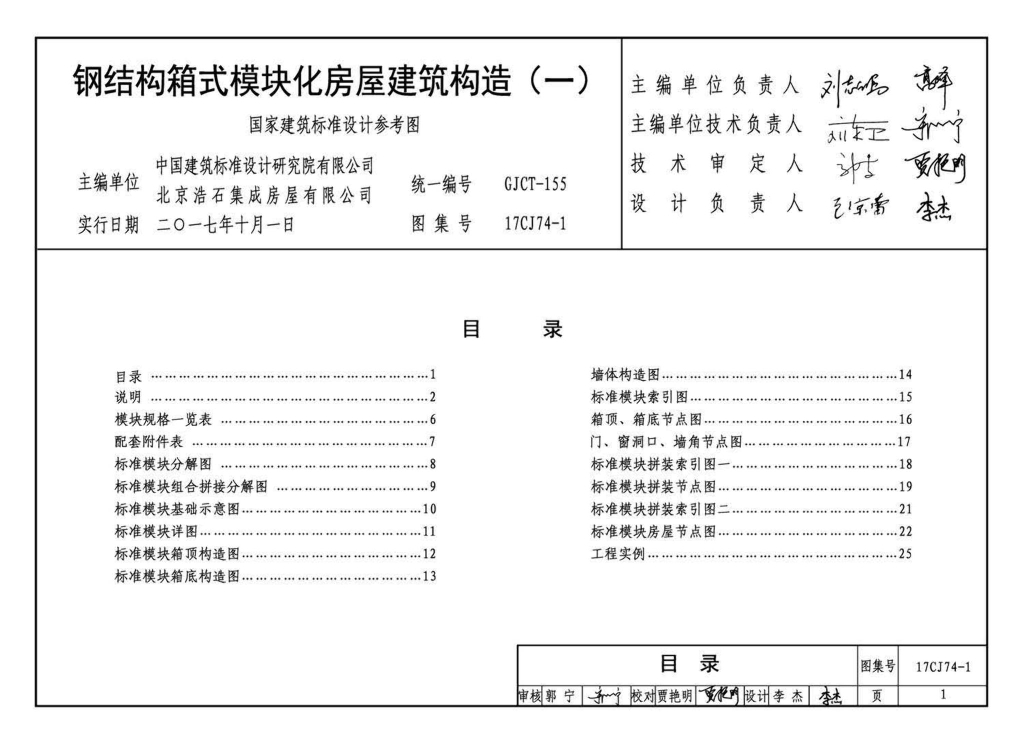 17CJ74-1钢结构箱式模块化房屋建筑构造(一)参考图集