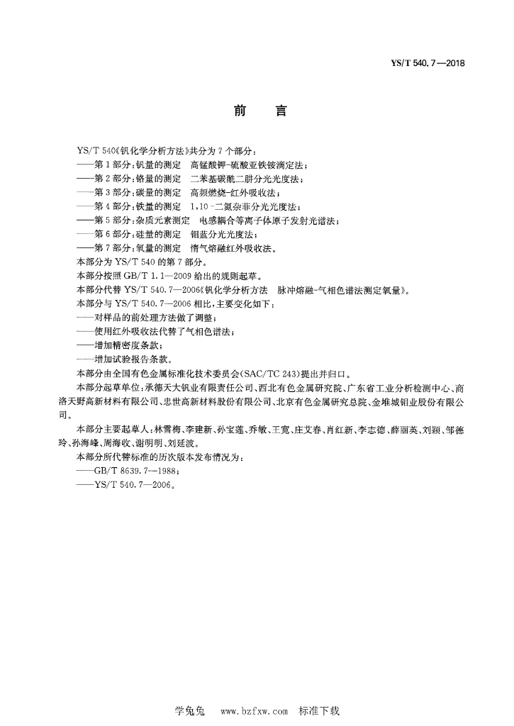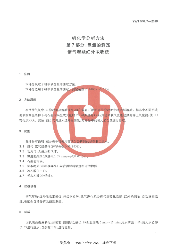 YS/T 540.7-2018 钒化学分析方法 第7部分:氧量的测定 惰气熔融红外吸收法